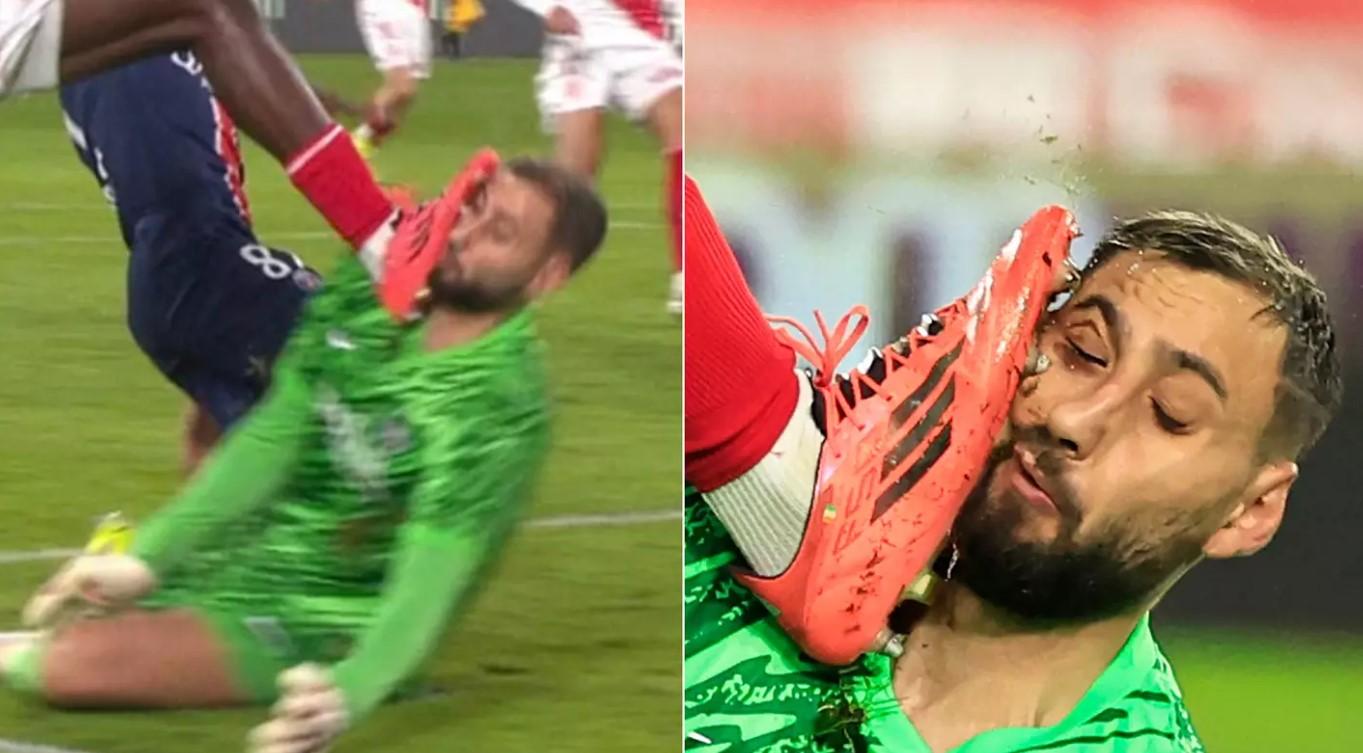 Donnarumma lập tức ngã xuống sân trong tình trạng chảy máu và bị choáng váng. Các vết thương sâu trên khuôn mặt khiến anh phải rời sân chỉ sau 22 phút thi đấu, nhường chỗ cho thủ môn dự bị Matvey Safonov. Những hình ảnh chia sẻ sau trận đấu cho thấy khuôn mặt Donnarumma biến dạng nặng nề với nhiều vết khâu, trong đó một vết thương chỉ cách mắt phải vài centimet, khiến người hâm mộ không khỏi lo lắng về nguy cơ mất thị lực của anh.