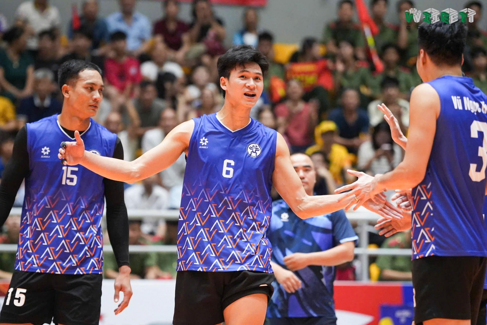 Chính tay đập điển trai này đã ghi điểm số quyết định cho đại diện Thủ đô với cú đập bạt chắn uy lực, mở tỉ số trận đấu.